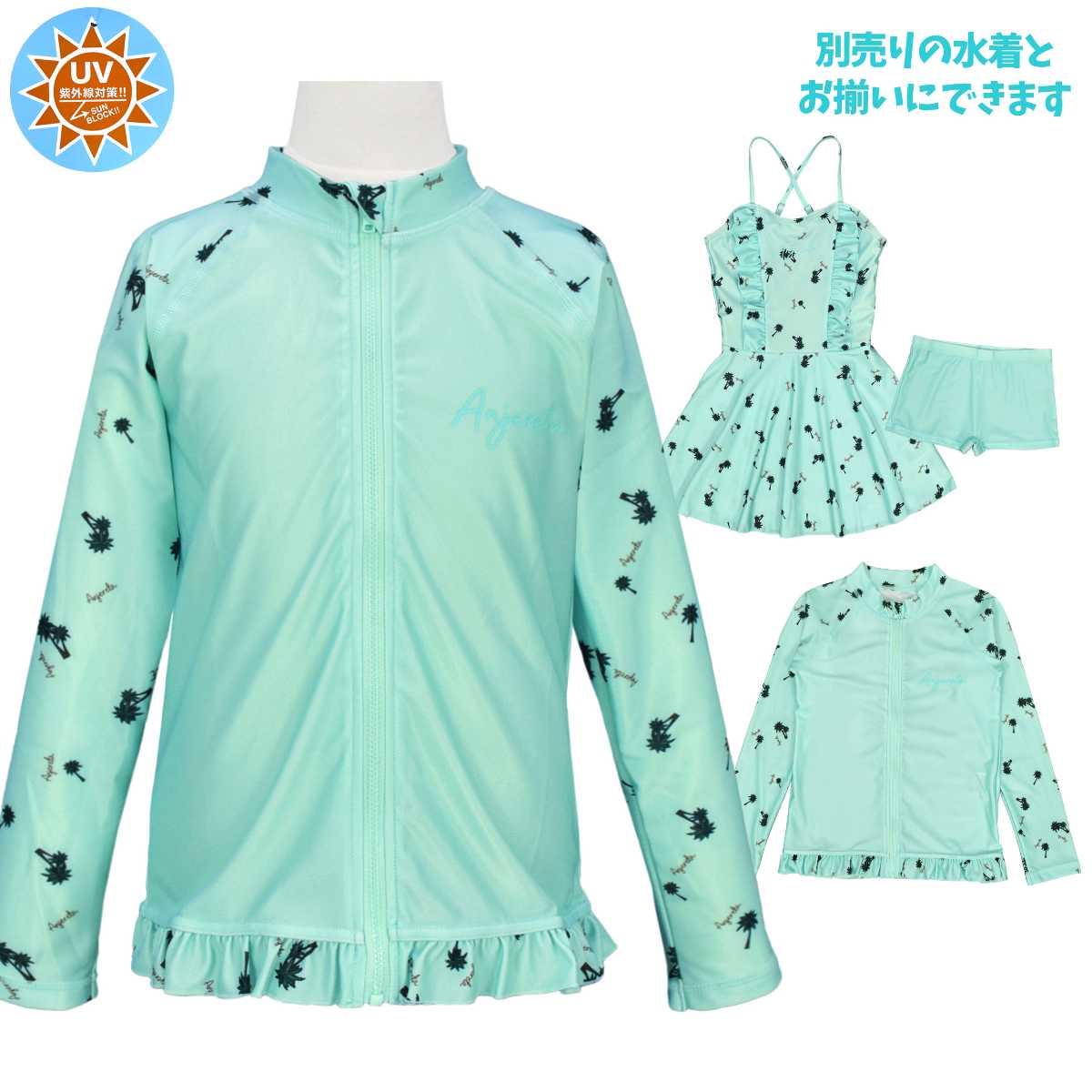 セパレート 水着 女の子 キッズ おしゃれ フリル ワンピース ヤシの木 UVカット