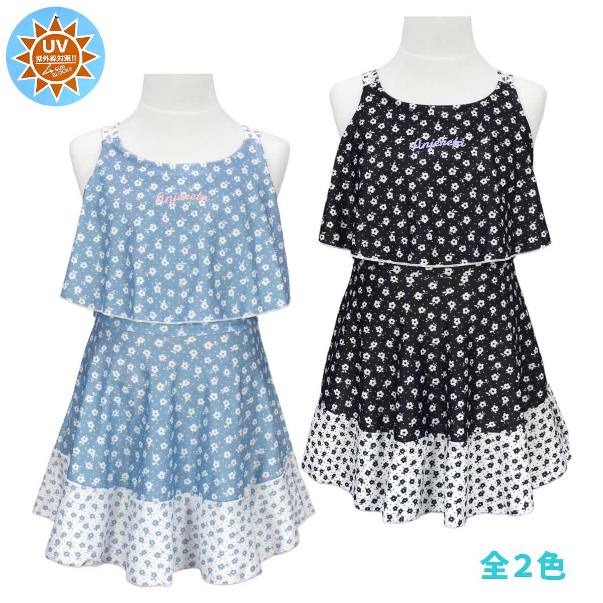 子供水着 女子 セパレート 水着 子供 キッズ UVカット 重ね着風 スカパン おしゃれ