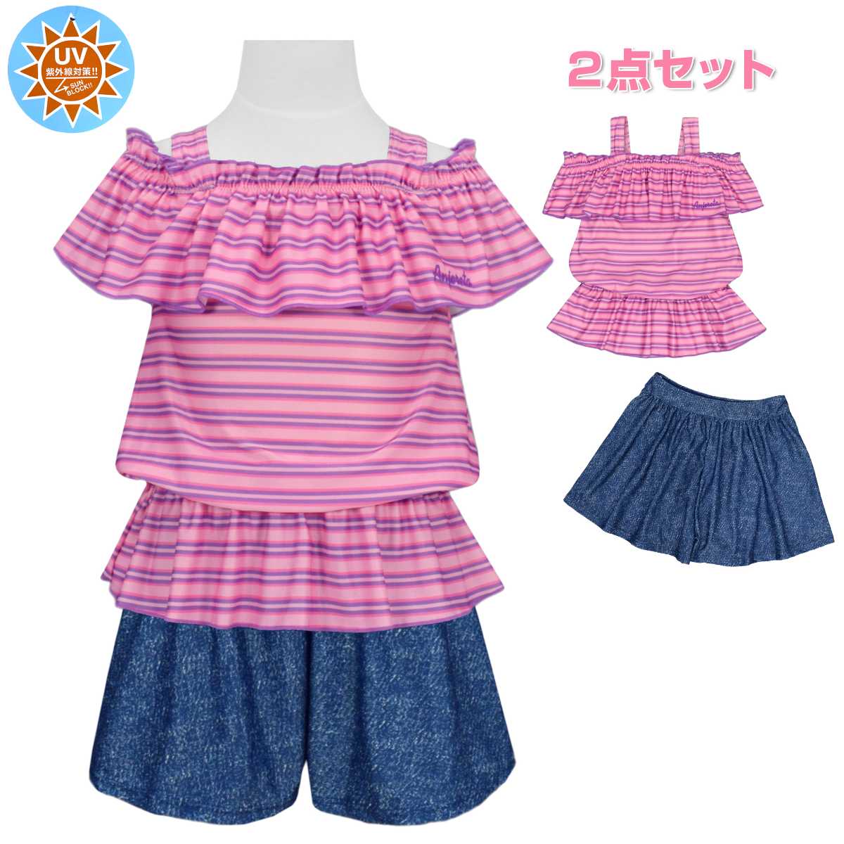 子供水着 女子 セパレート 水着 キッズ UVカット ボーダー キュロット おしゃれ