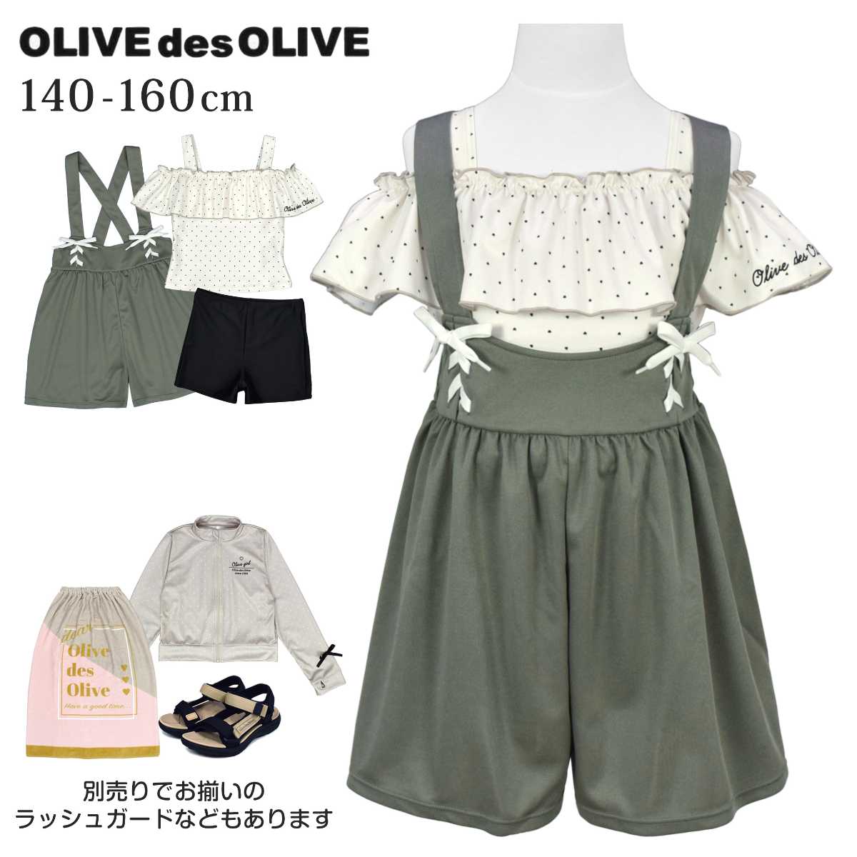 セパレート 水着 キッズ ジュニア 女の子 子供 サロペット タンキニ 3点 セット