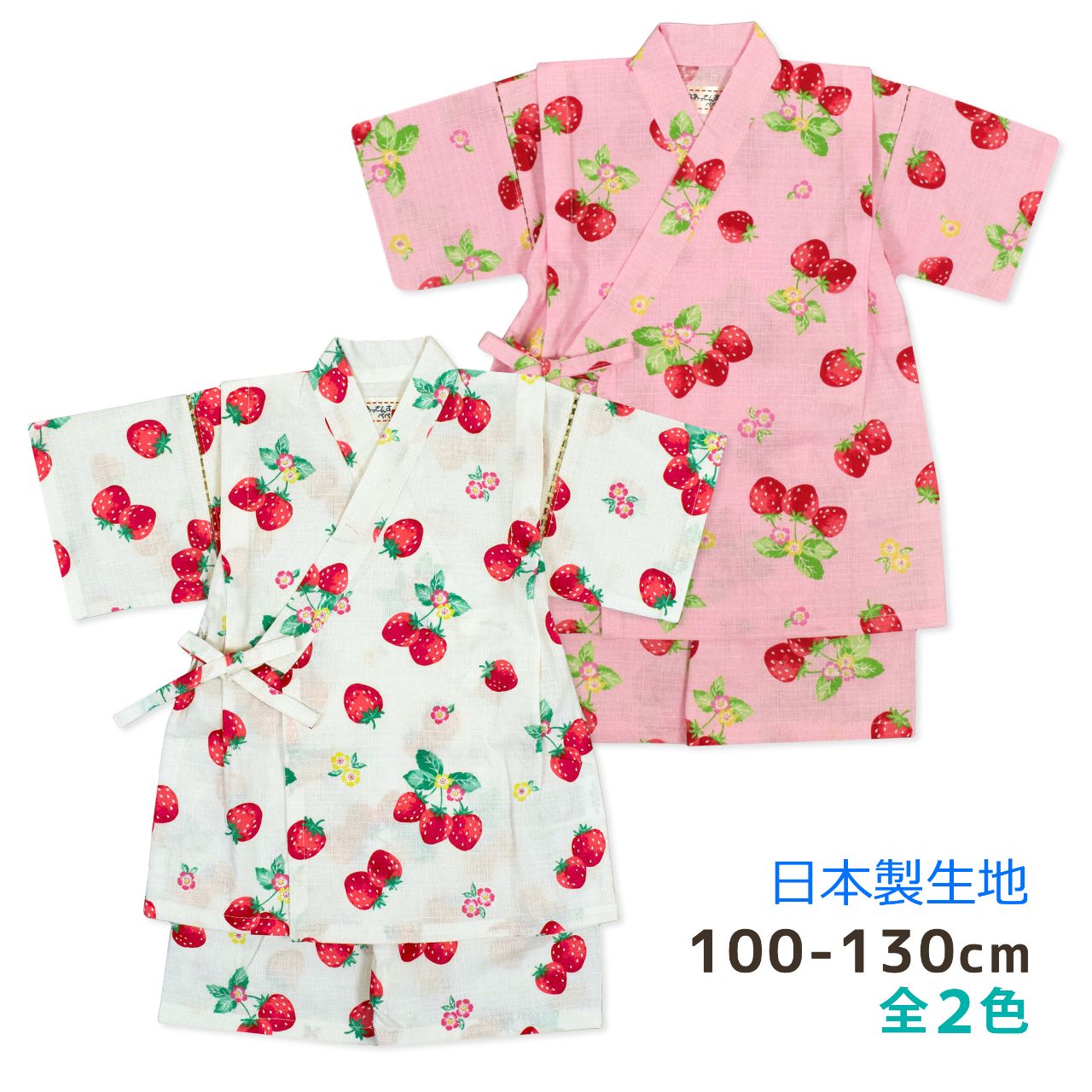 甚平 キッズ 女の子 子供 苺 可愛い 日本製 生地 上下 セット 綿100%