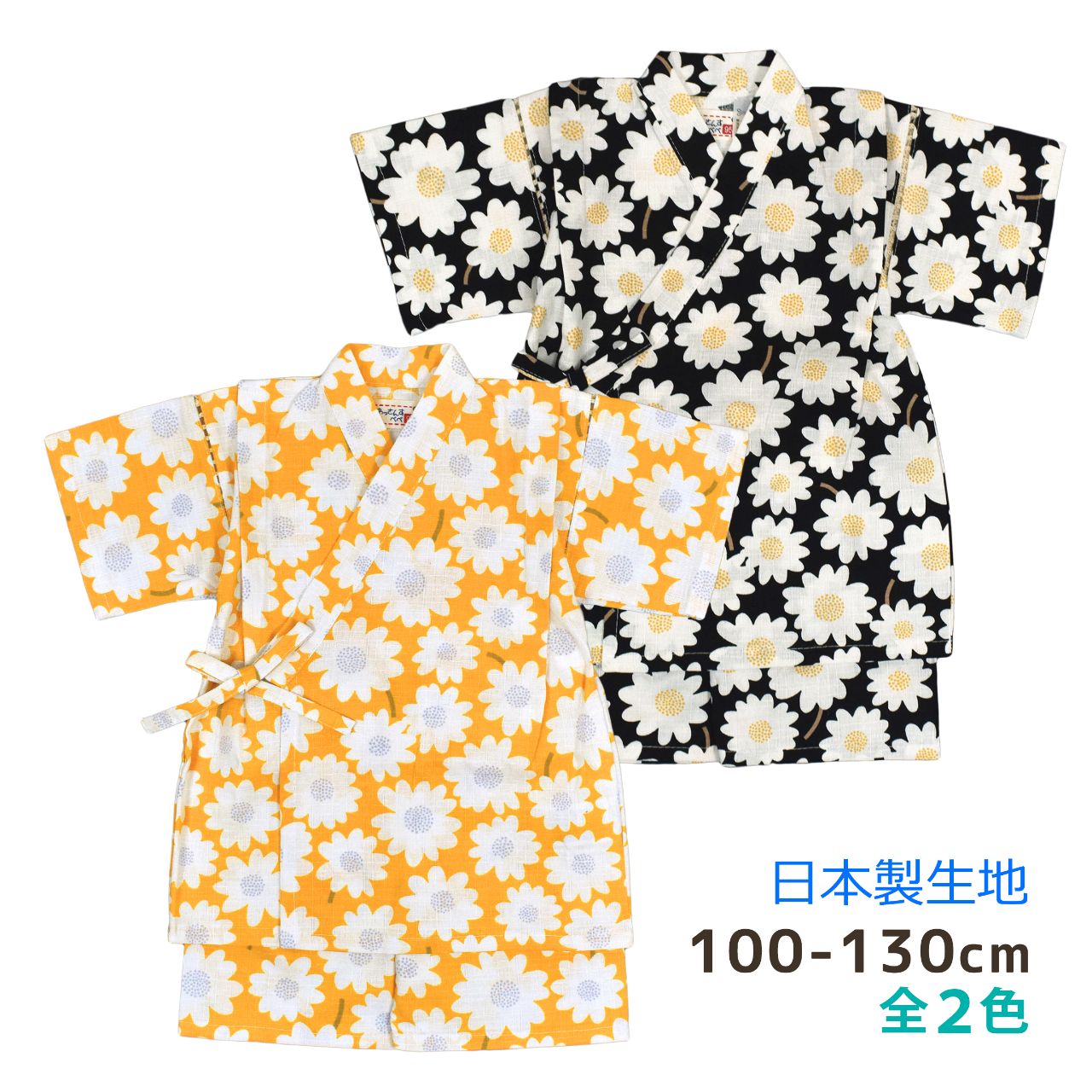 甚平 子供 女の子 可愛い お花 デイジー 日本製 生地 上下 セット 綿100%