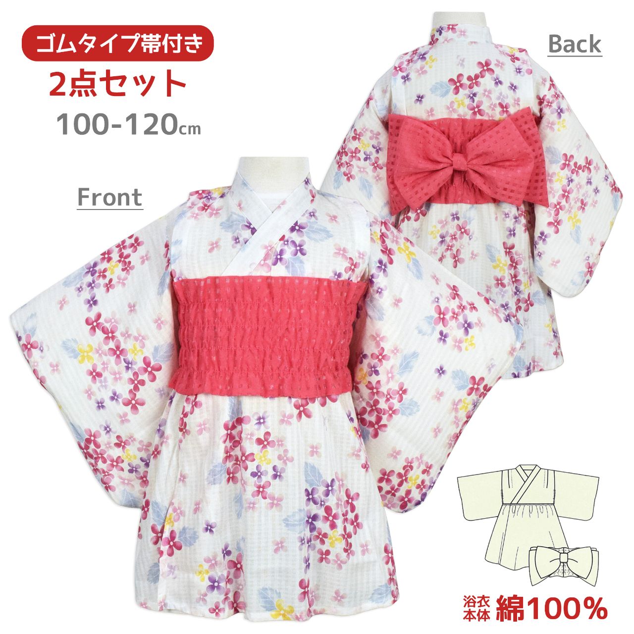 浴衣 ワンピース型 キッズ 子供 紫陽花 兵児帯 ワンピース 浴衣セット 綿100%