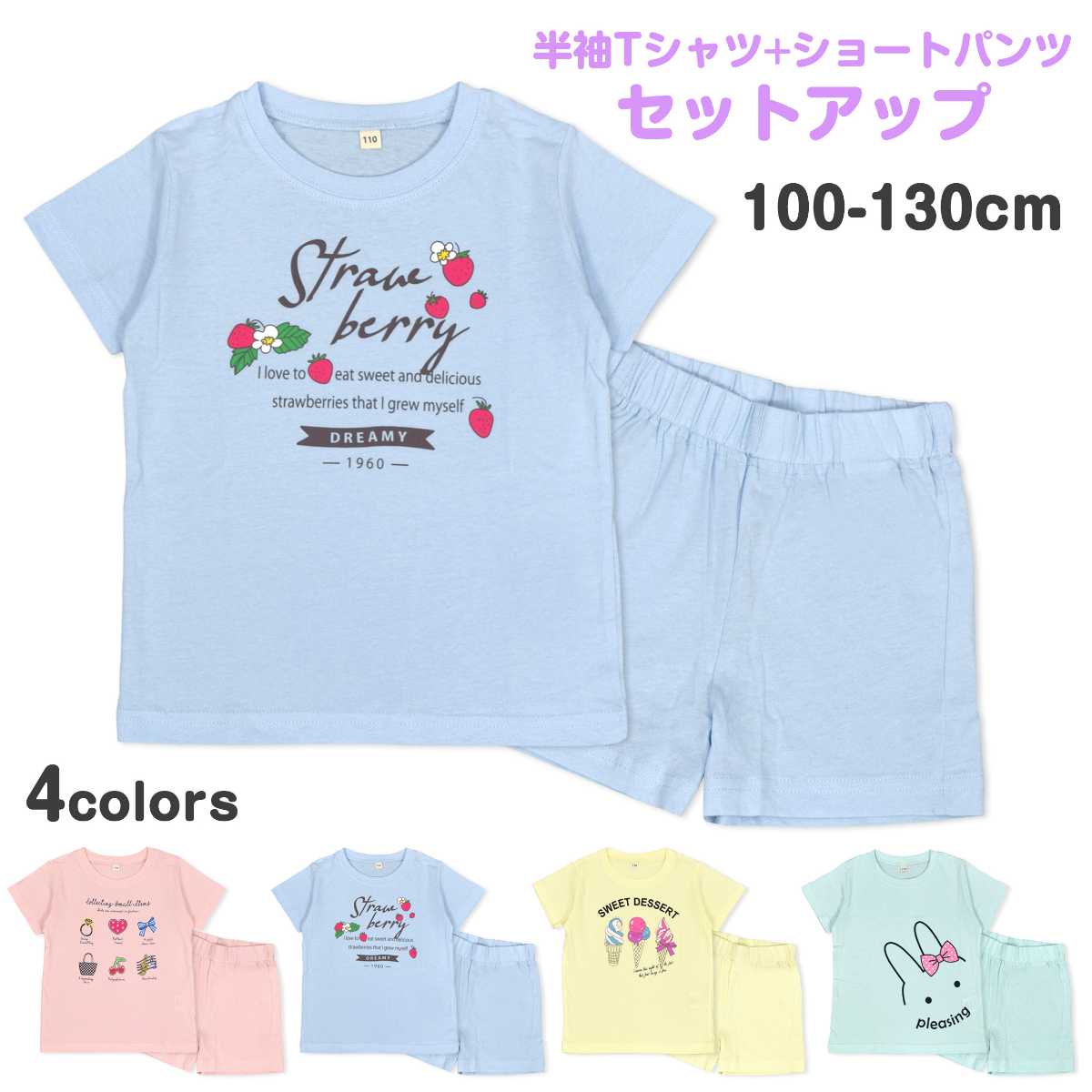 半袖 Tシャツ 上下セット 子供 女の子 イチゴ 綿100% セットアップ