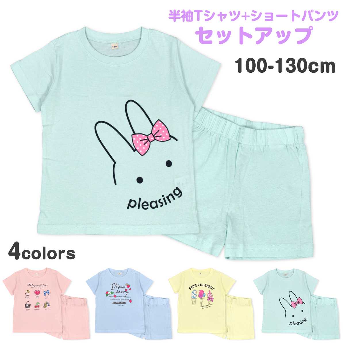 半袖 Tシャツ 上下セット 子供 女の子 ウサギ 綿100% セットアップ