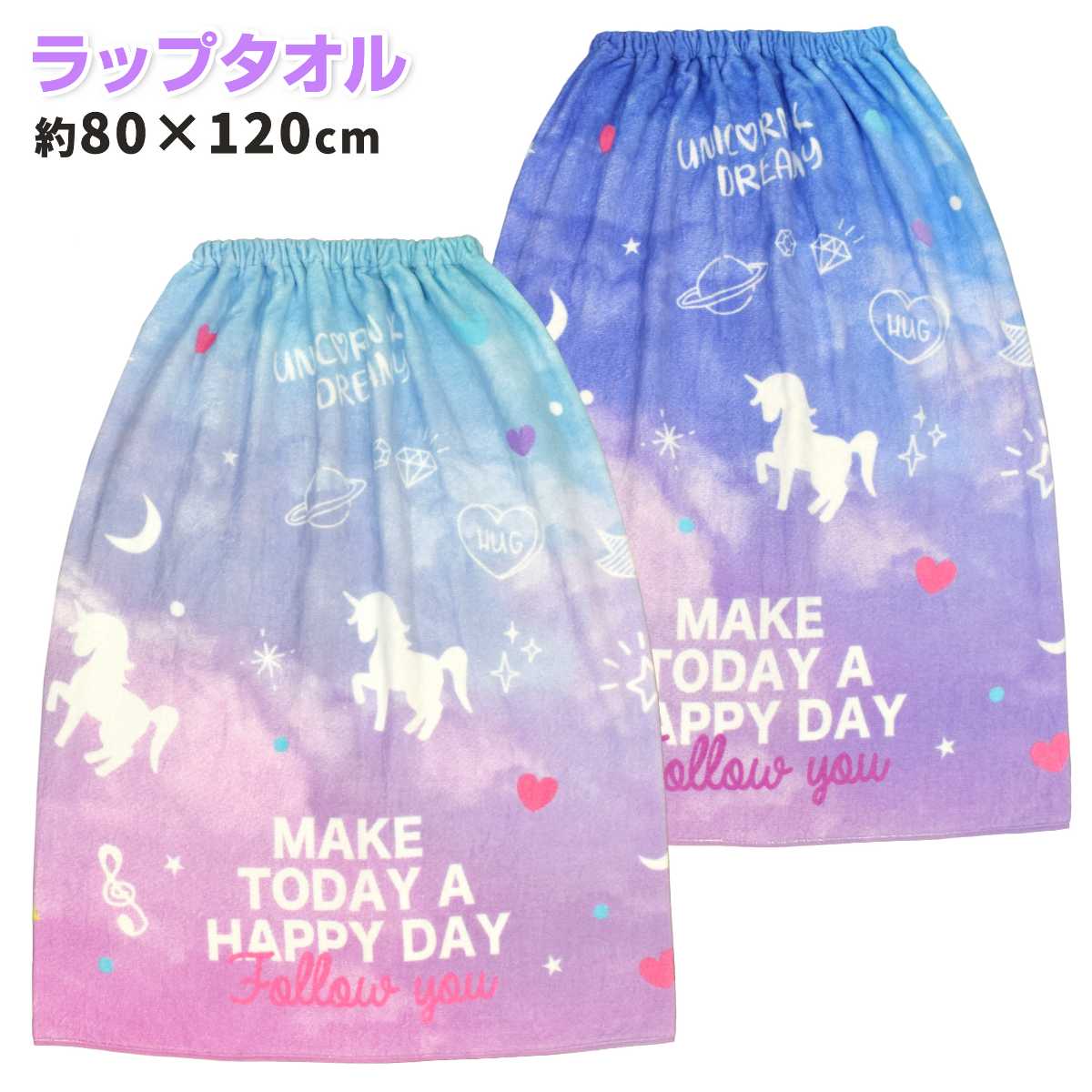 巻きタオル 子供 80cm キッズ ジュニア 子供 女の子 ユニコーン スナップ付き
