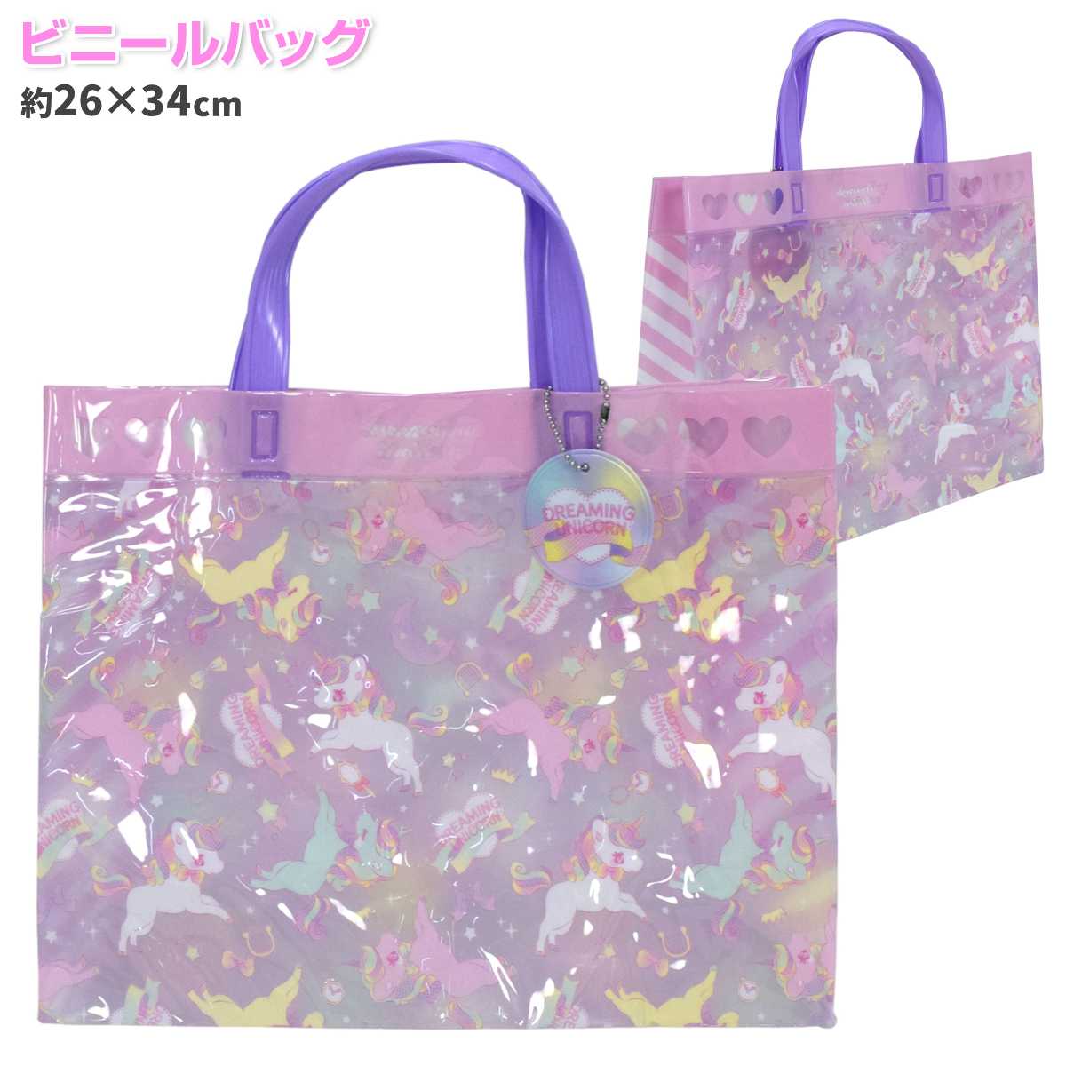 プールバッグ キッズ 子供 ユニコーン 女の子 マチ付き ビニールバッグ