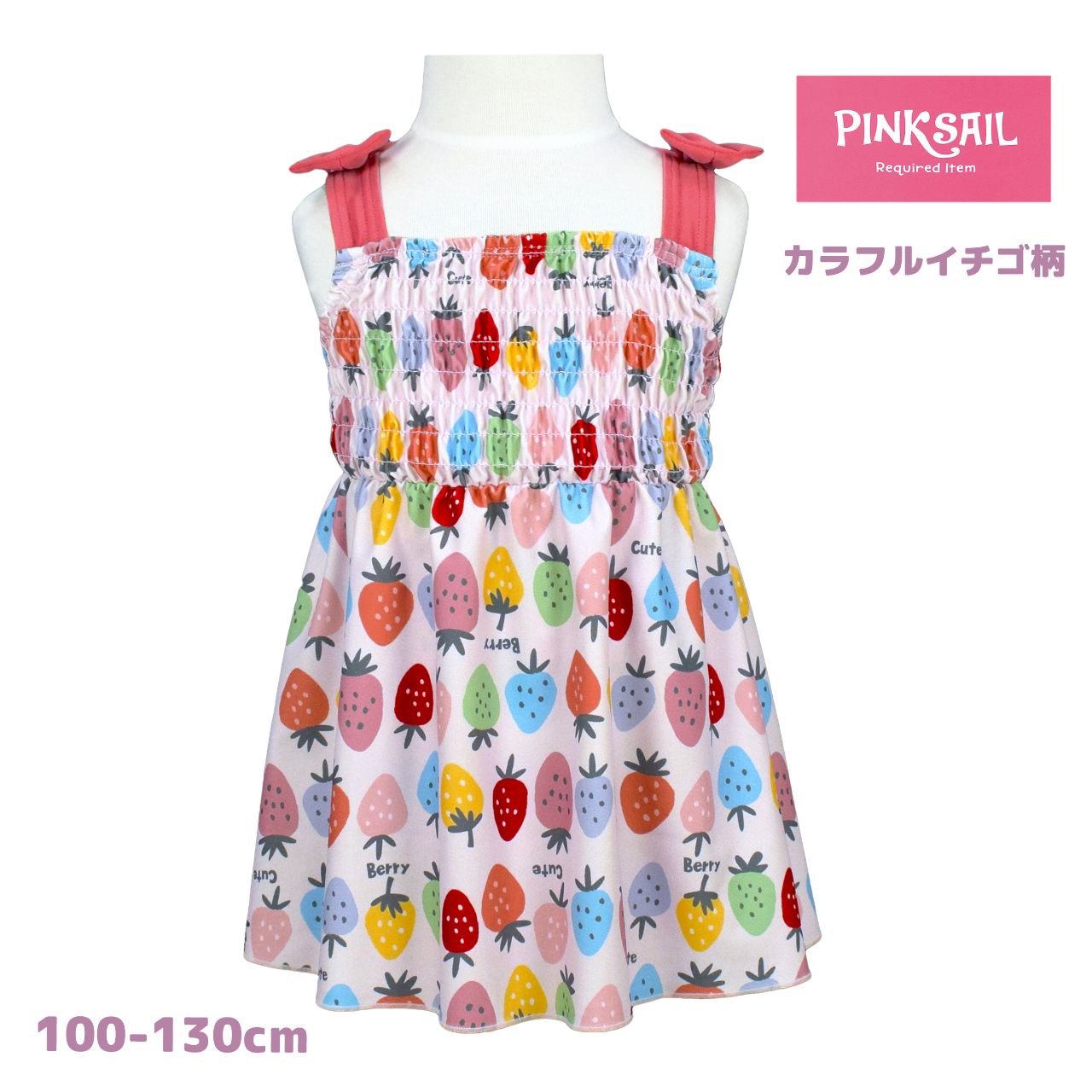 ワンピース水着 キッズ 子供 女の子 UVカット 苺 可愛い リボン付き 水着