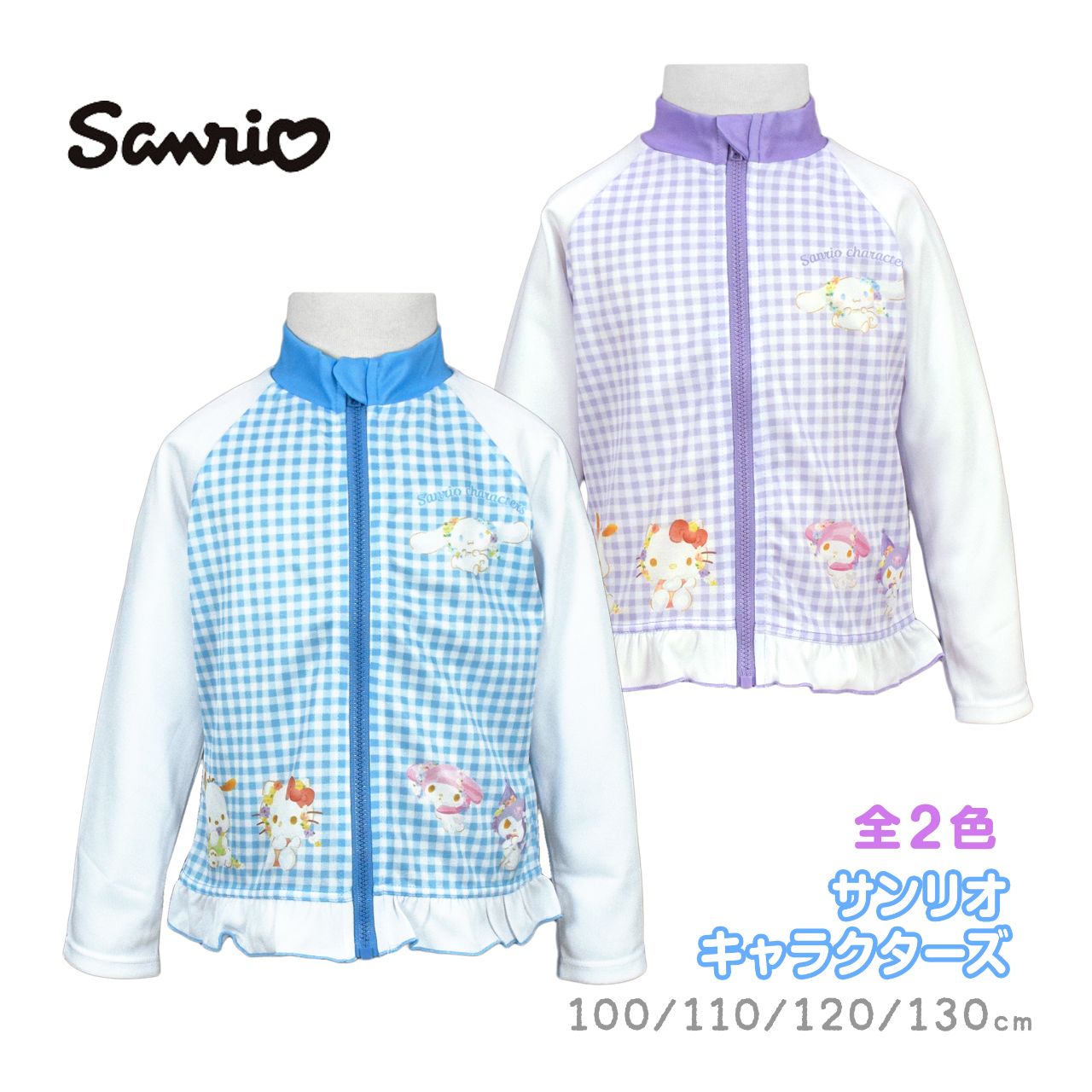 長袖 ラッシュガード キッズ 女の子 シナモロール UVカット フルジップ 子供水着