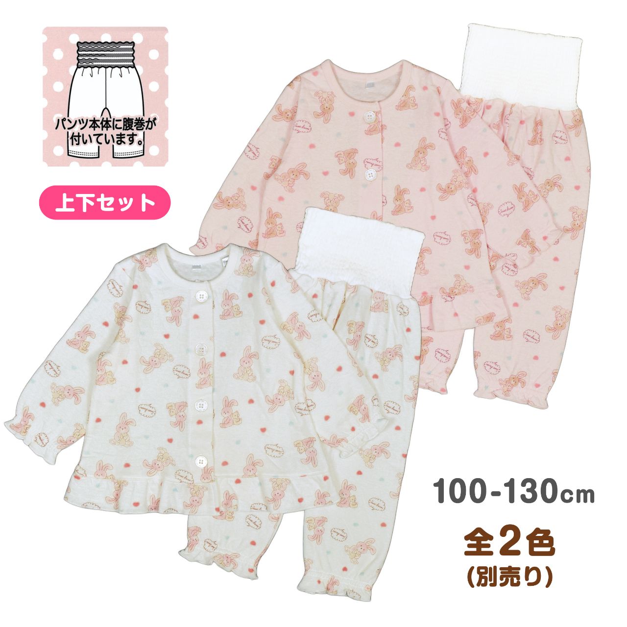 パジャマ 長袖 ニットキルト 腹巻き付き キッズ 子供 女の子 うさぎ クマ 総柄