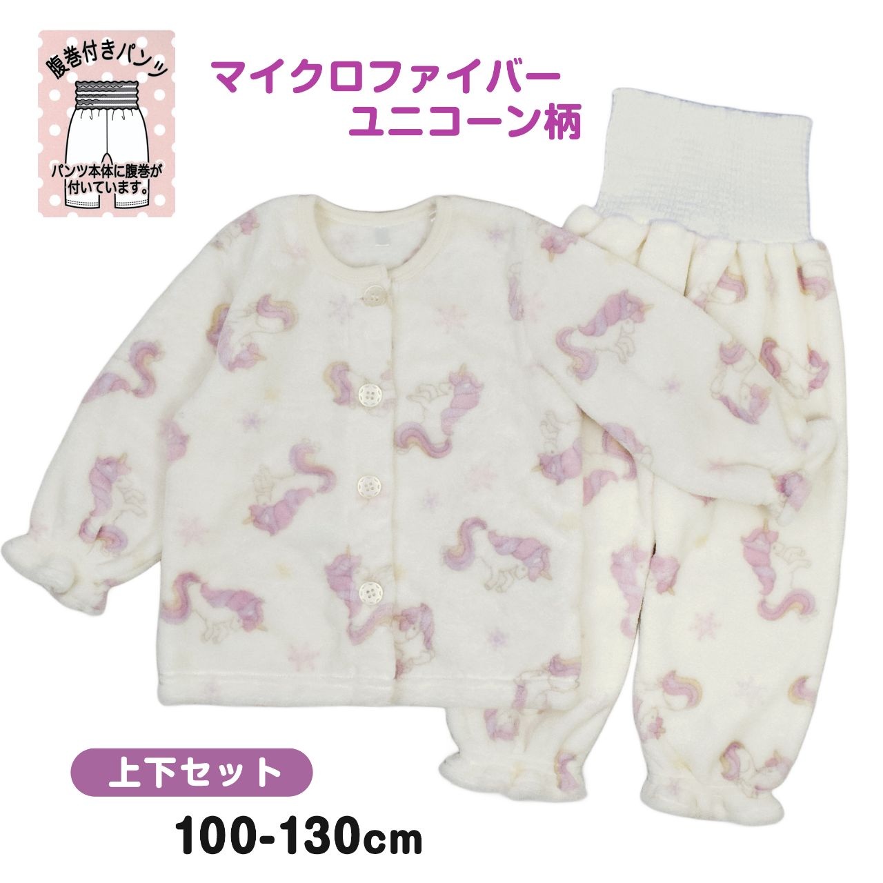 パジャマ 長袖 前開き 腹巻き付き キッズ 女の子 ユニコーン マイクロファイバー