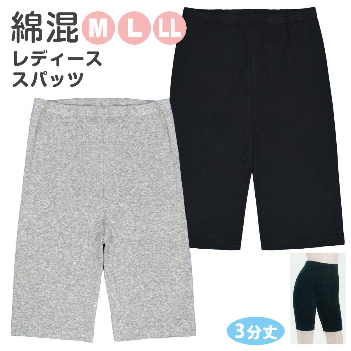 スパッツ 3分丈 レディース ショートレギンス 綿混 インナー レギンス 無地