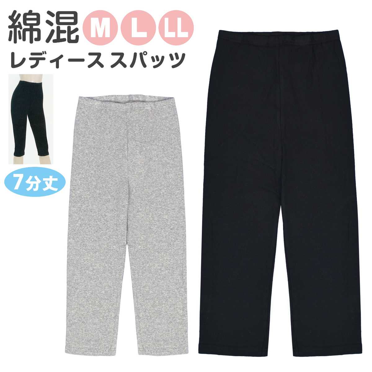 スパッツ 7分丈 レディース レギンス ロング 綿混 インナー タイツ 無地