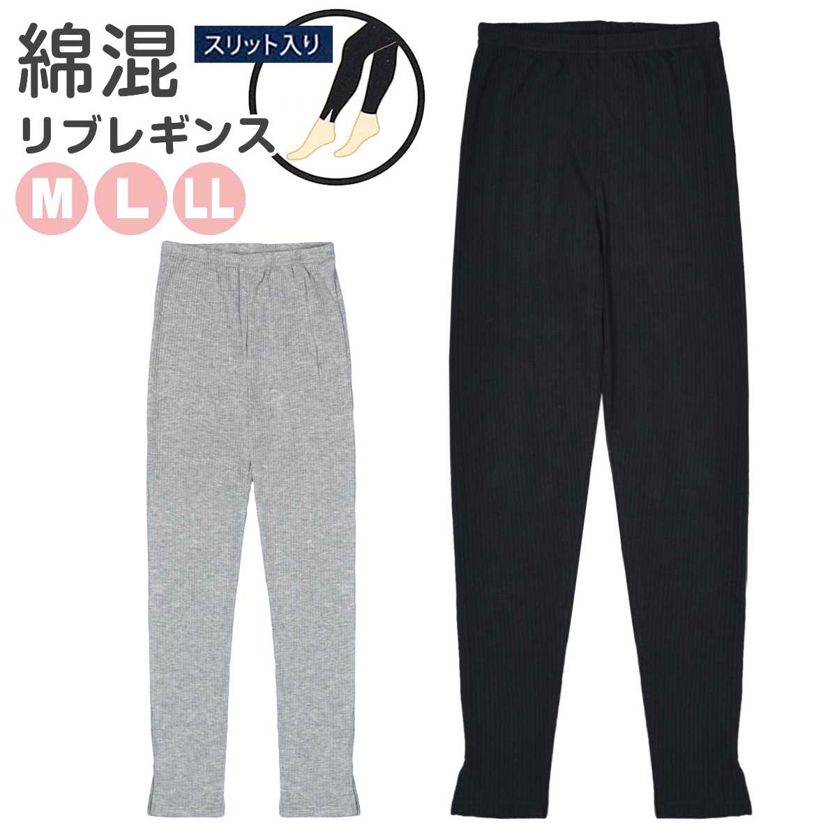 リブ レギンス レディース スリット リブレギンス レギパン 綿混 シンプル 無地