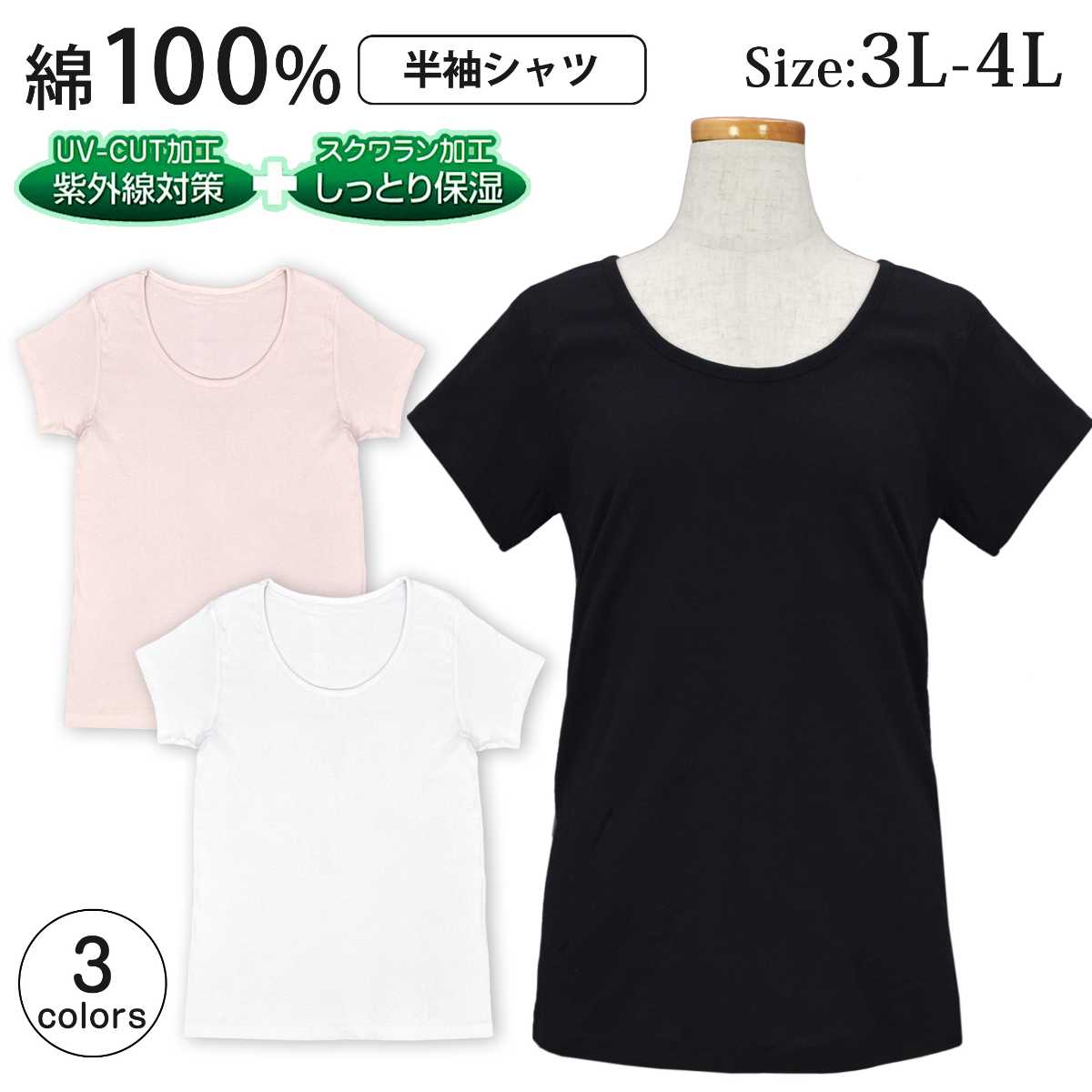 半袖Tシャツ レディース 大きいサイズ インナー トップス 無地 UVカット 保湿 綿