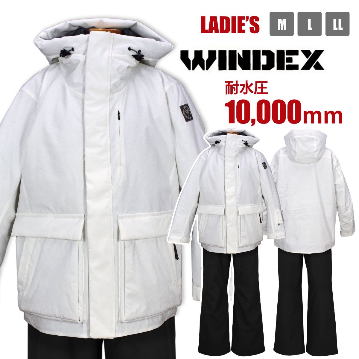 スキーウェア 上下 レディース WINDEX 耐水圧10000mm 無地 パスケース付 ジャケット