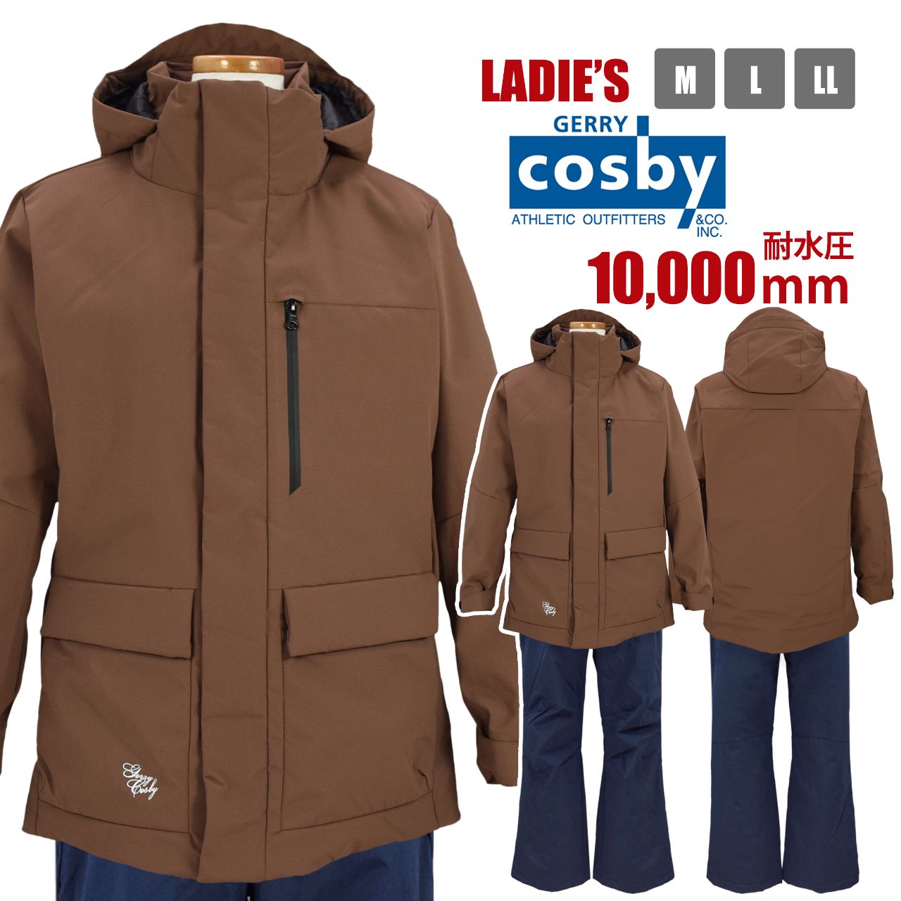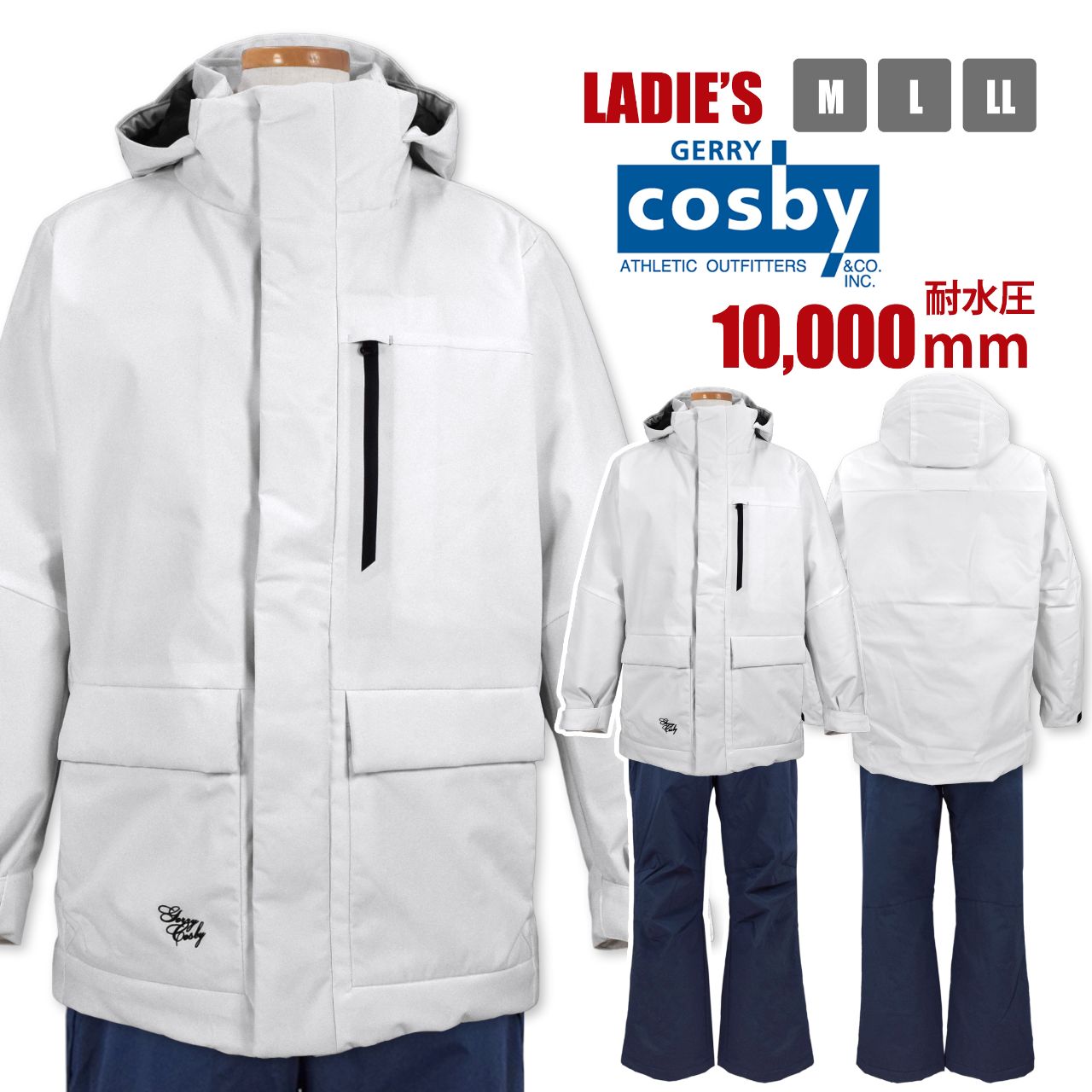 スキーウェア レディース cosby 衿中綿ボリューム仕様 耐水圧10000mm 上下 防寒