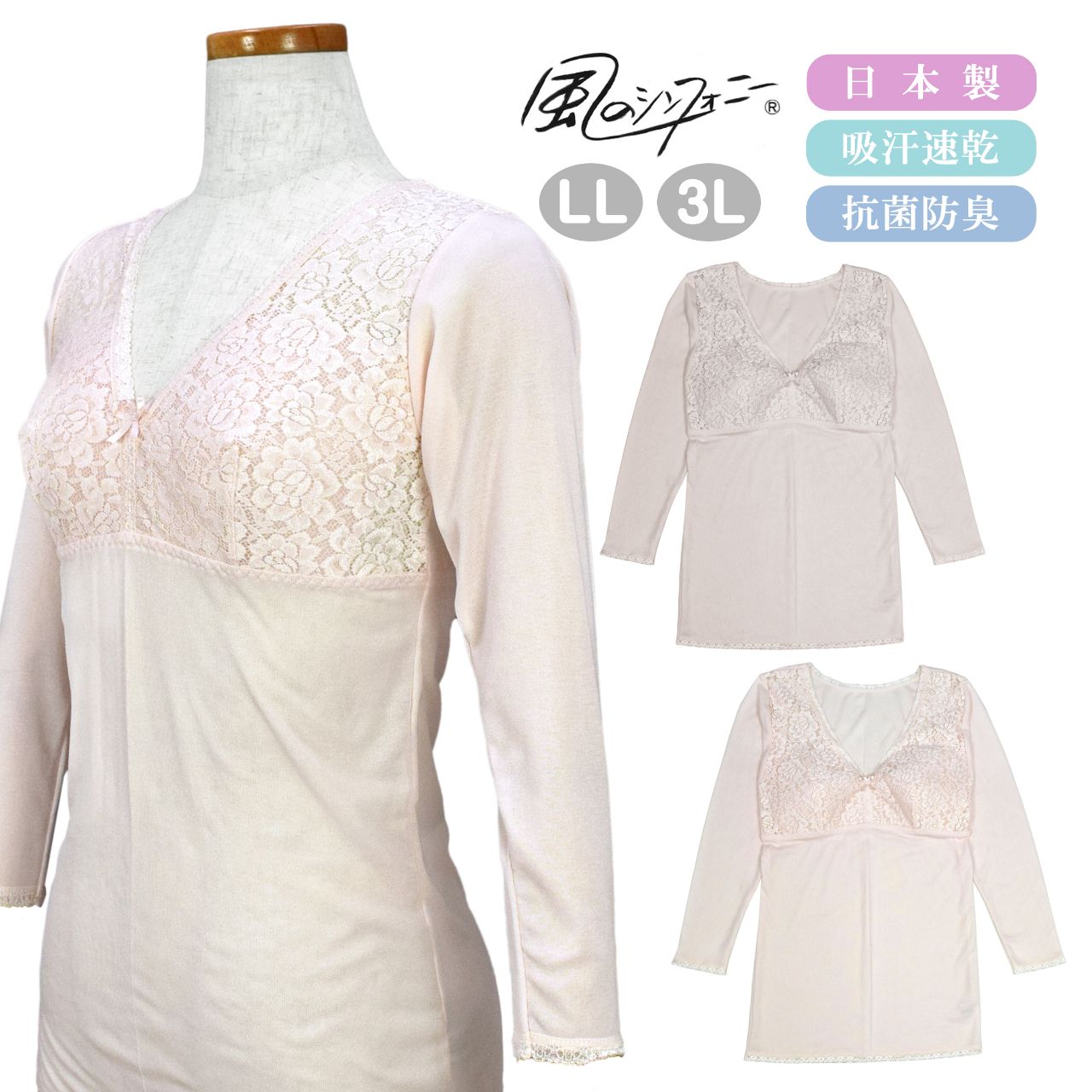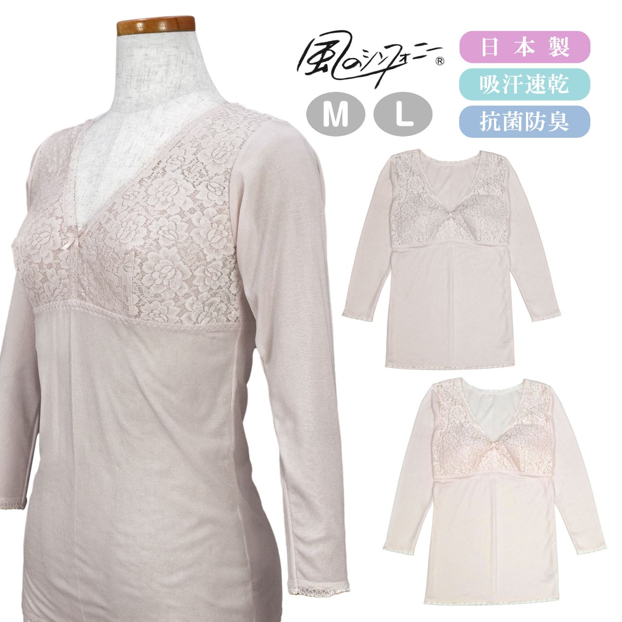 肌着 レディース 長袖 シャツ 日本製 カップ付き インナー ノンワイヤー 吸汗速乾