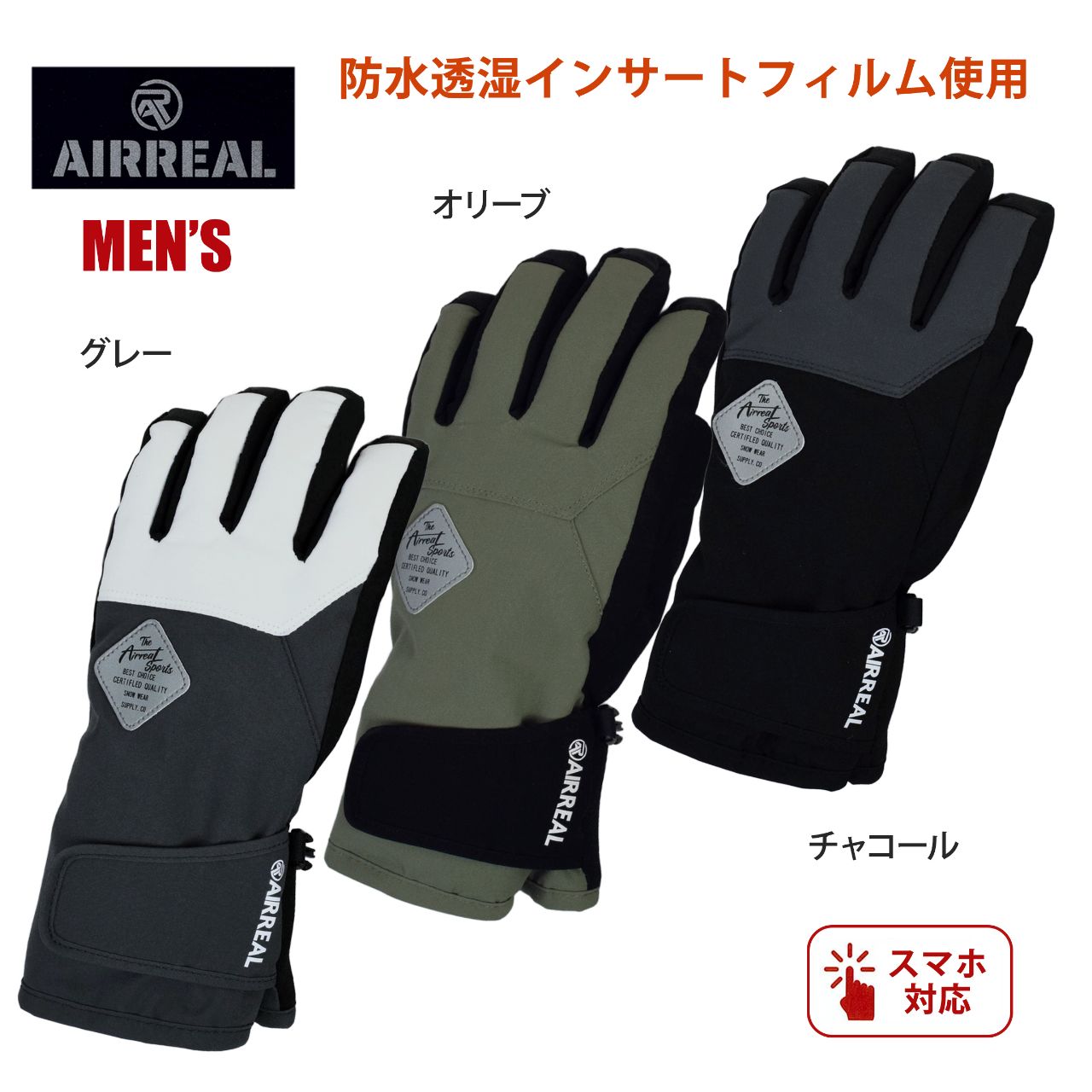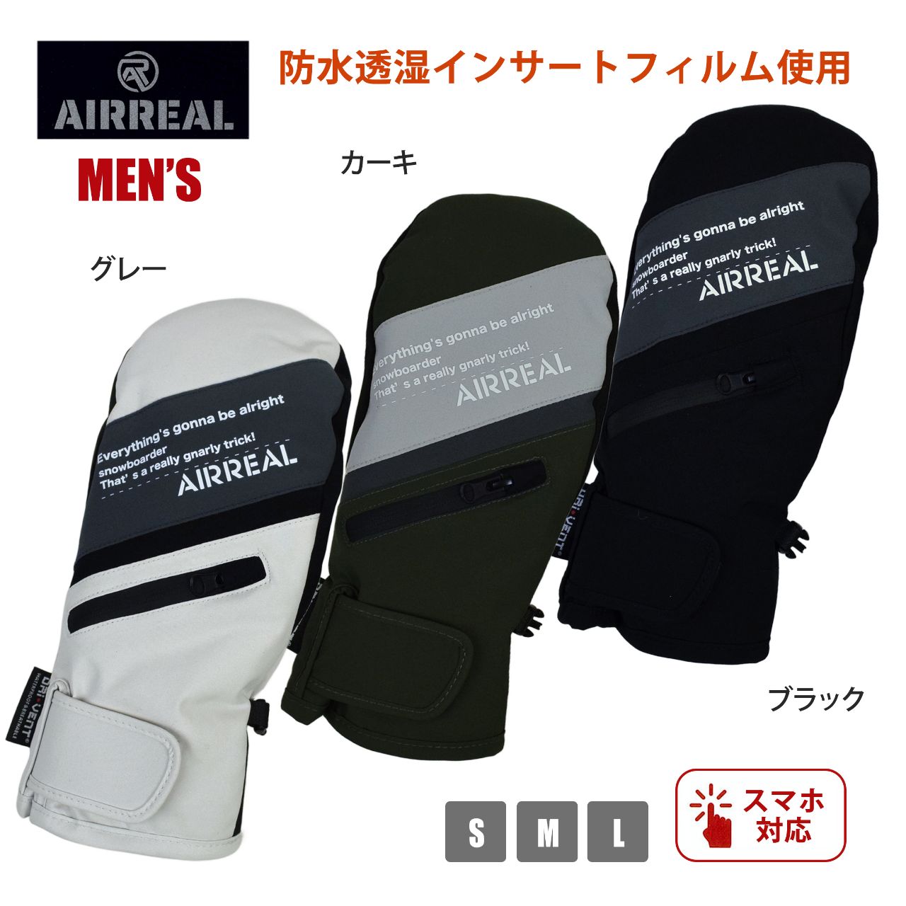 スキーグローブ ミトン 大人 AIR REAL タッチパネル対応 吸湿発熱加工 五本指 手袋