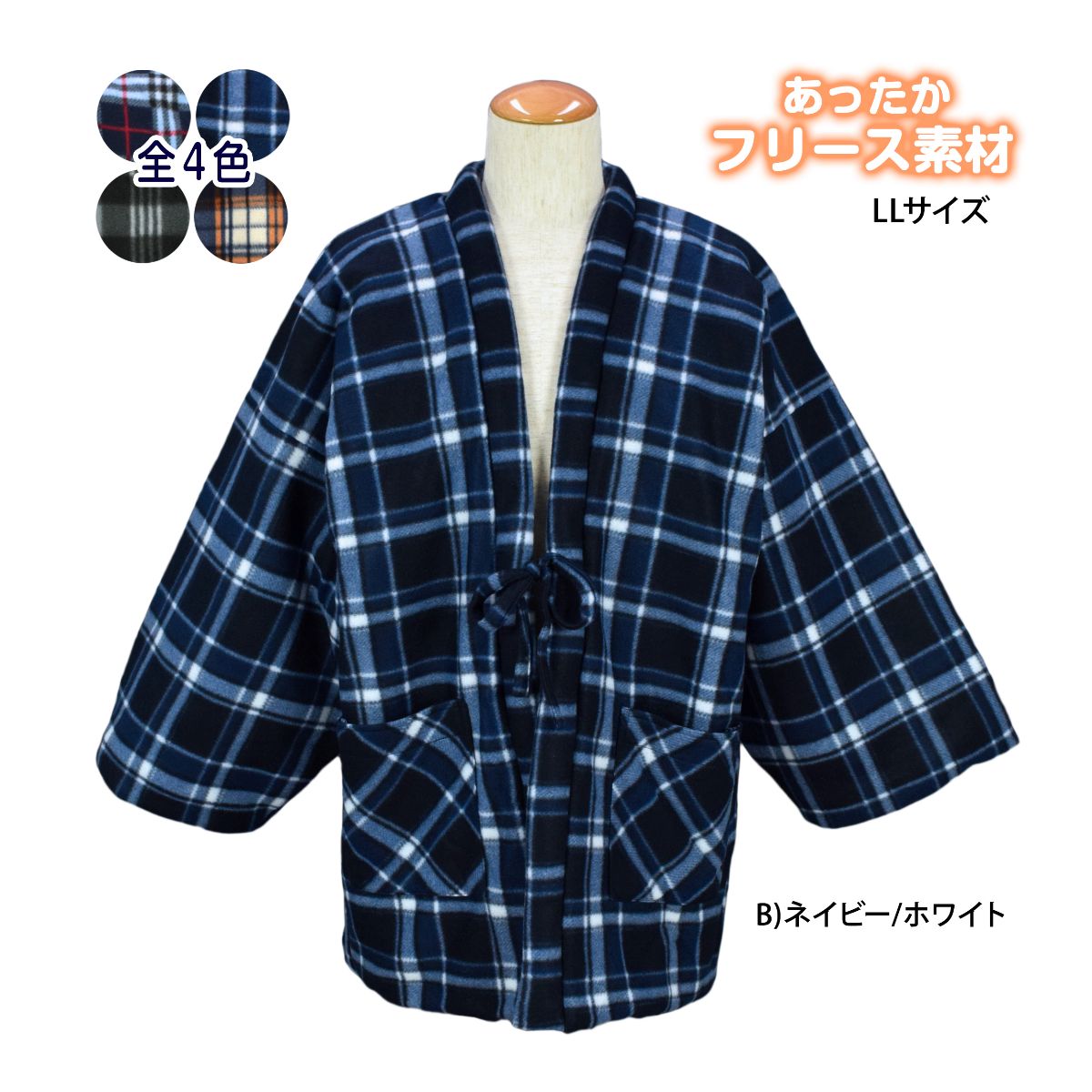 半纏 大きいサイズ メンズ フリース 綿入れ ポケット付き おしゃれ あったか