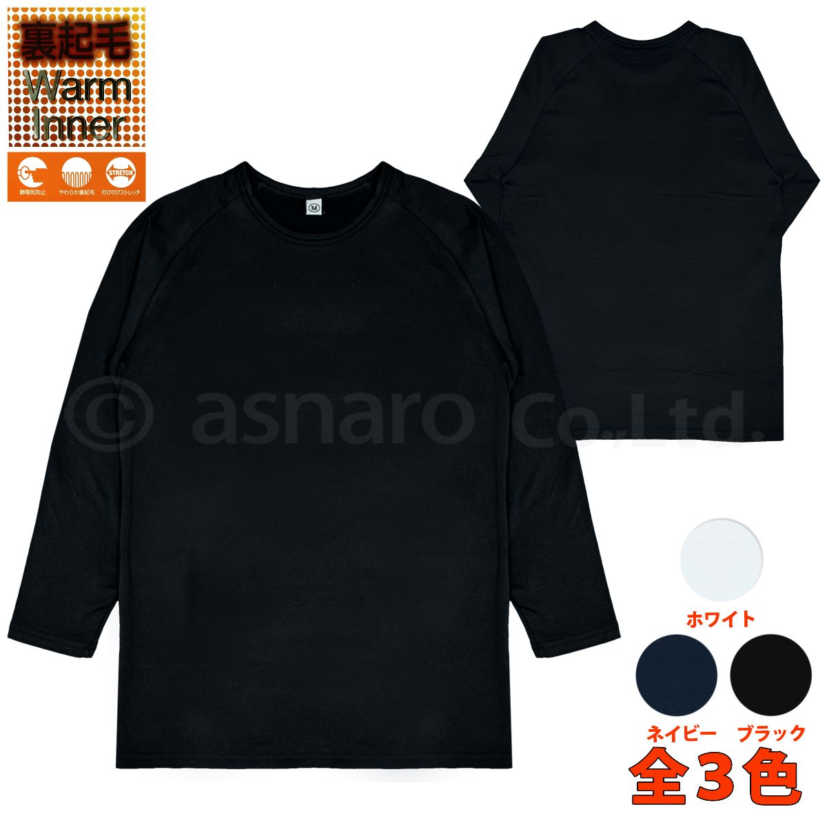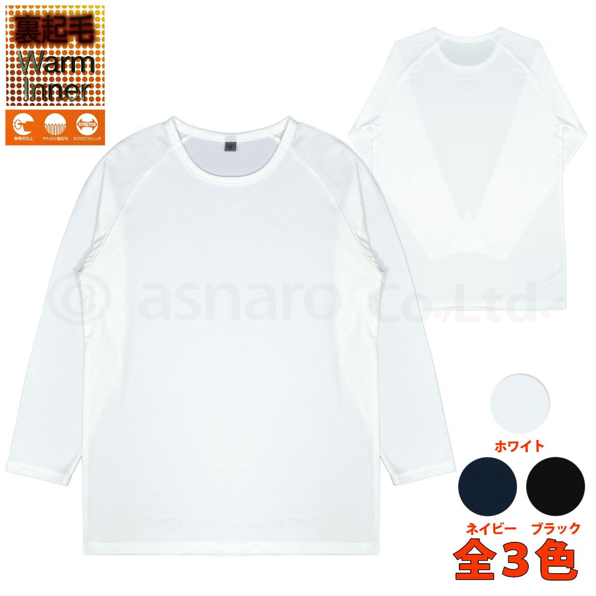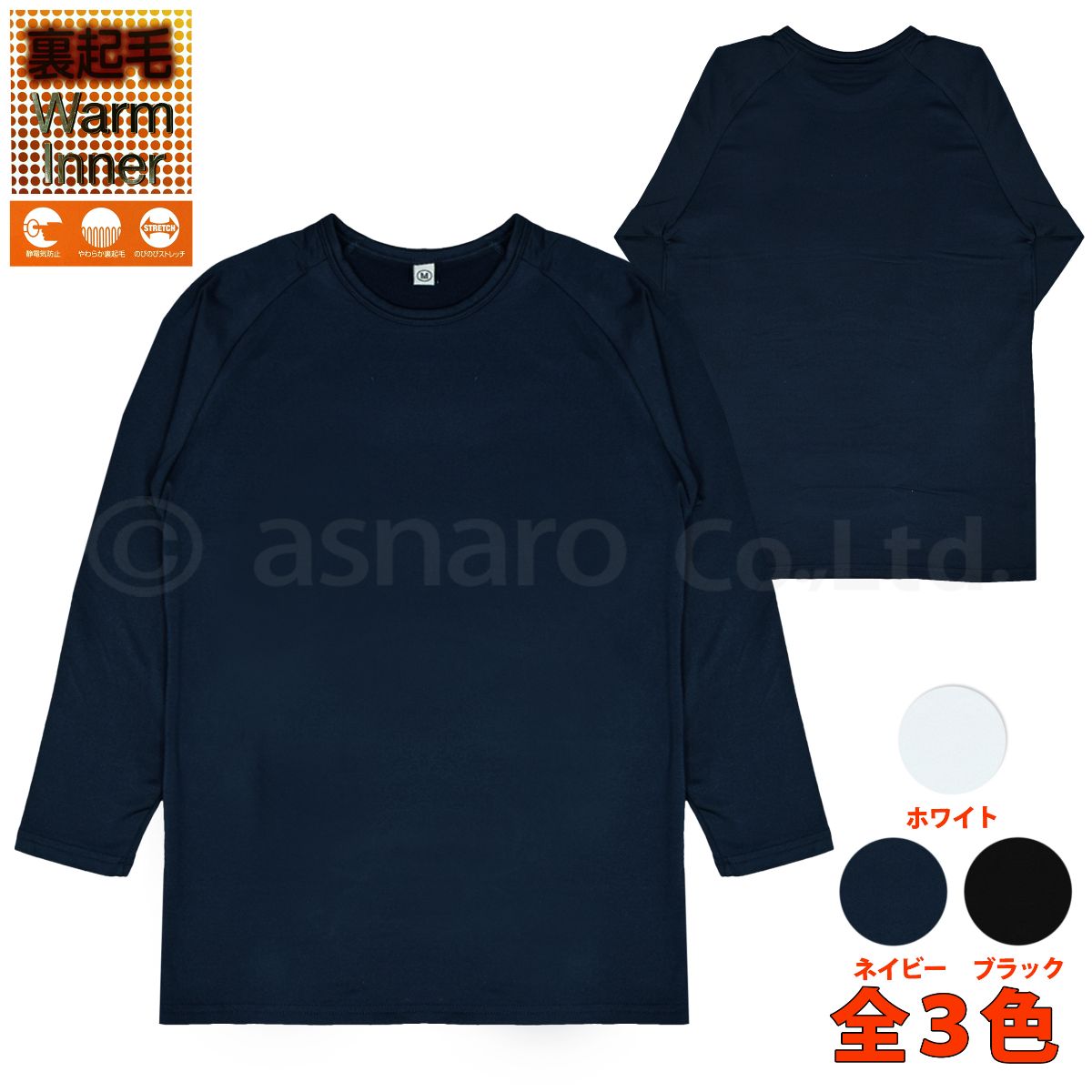 長袖シャツ メンズ インナー 裏起毛 丸首 あったか