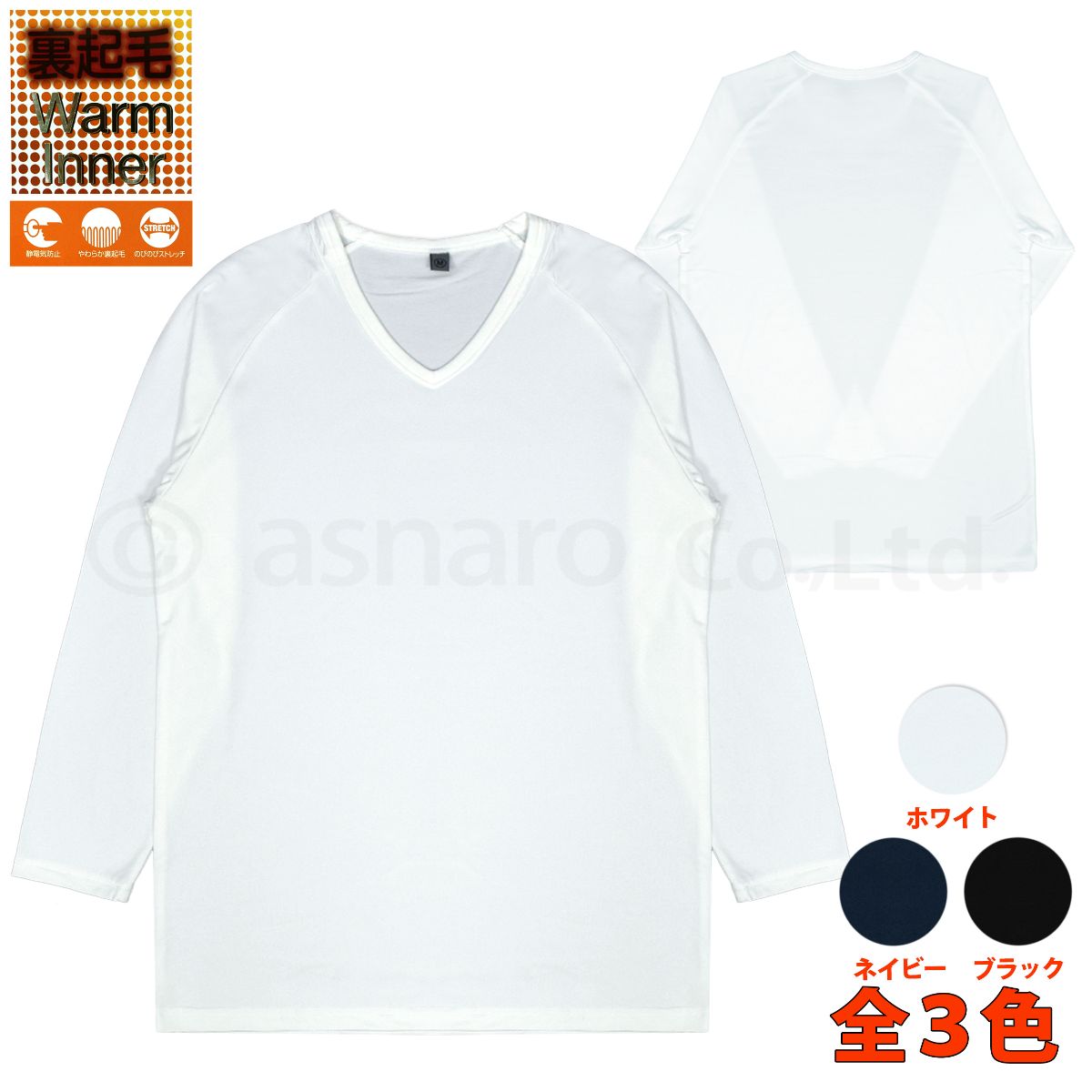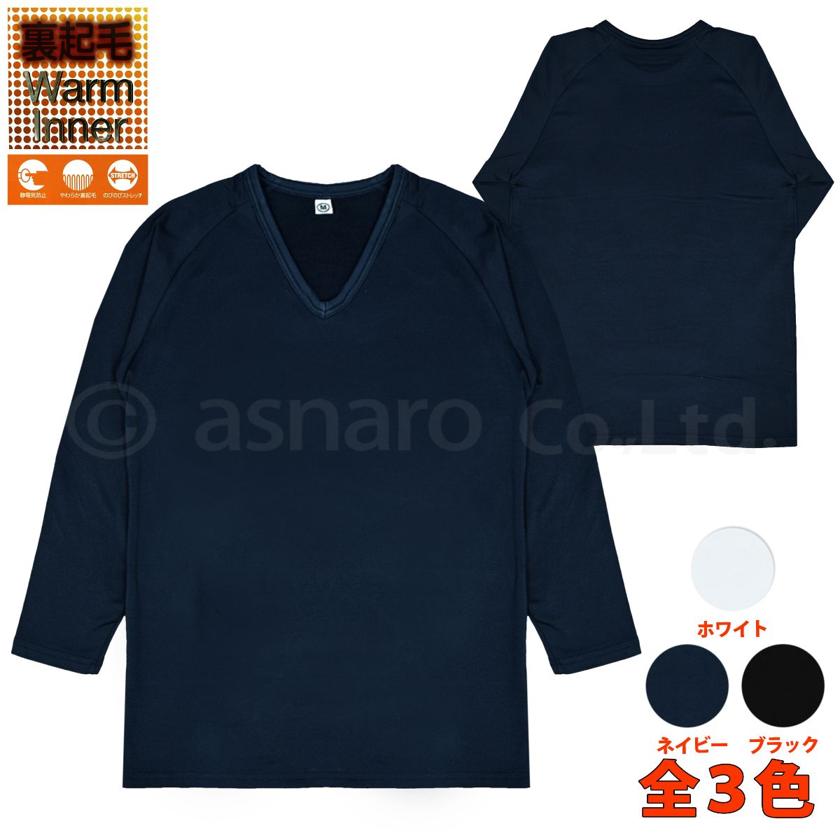 長袖シャツ メンズ インナー 裏起毛 Vネック 紳士