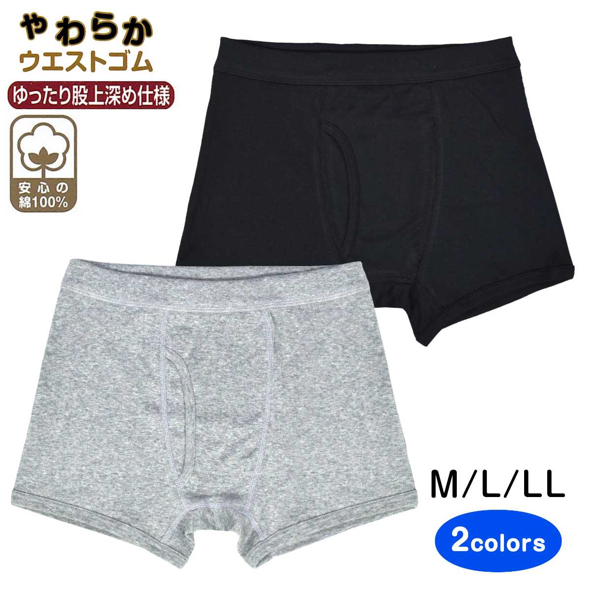 ボクサーパンツ 股上深め メンズ 前開き ニット 下着 紳士 肌着 綿 コットン