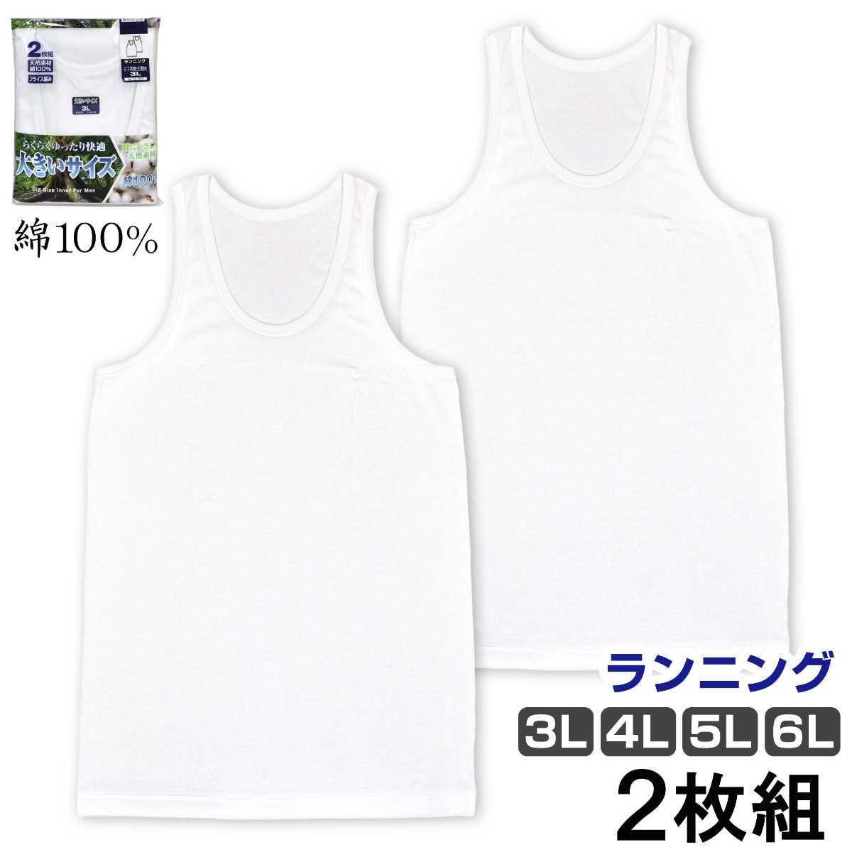 ランニングシャツ 2枚組 メンズ 大きいサイズ タンクトップ 天然素材 綿 白