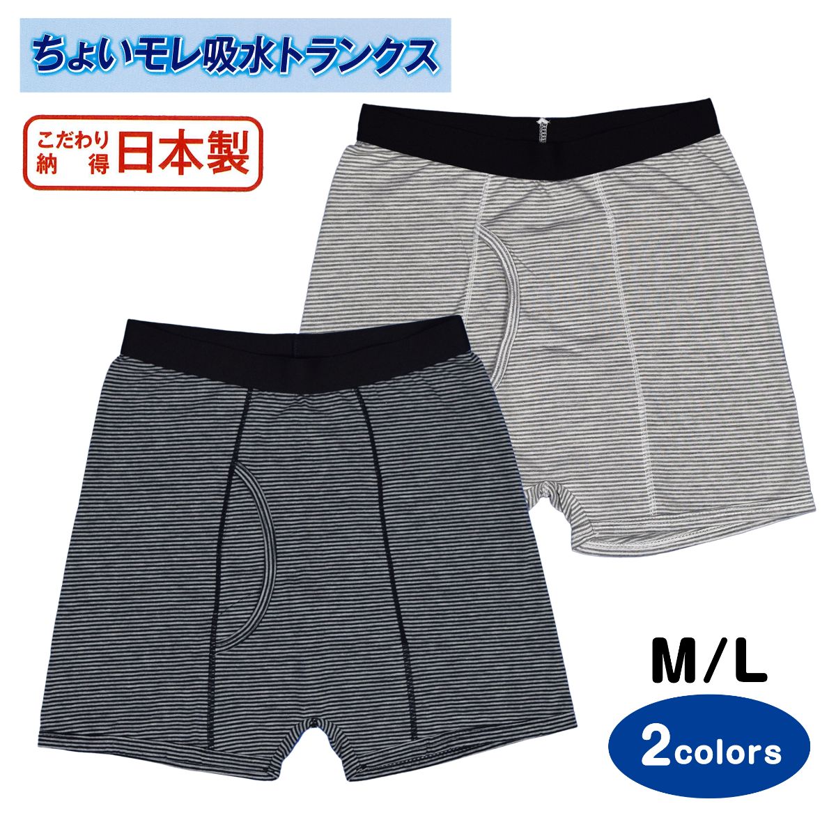 尿漏れパンツ 男性 日本製 トランクス メンズ 前開き おしゃれ ボーダー